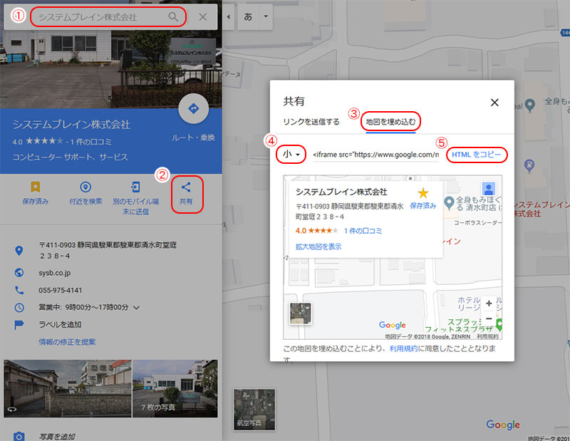 そこで、代替案として通常のgoogle mapsの埋め込み機能を使用する形をご提案いたします。