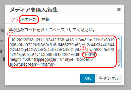 (3)HTMLの中にある「width="~"」の~の部分を100%にする。