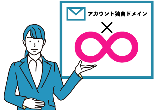 独自ドメインを用いる本プランでは、メールアカウントを独自ドメインで無制限に設定することができます。