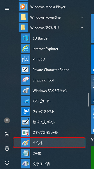 下図を参照しながらこれを起動してください。(赤枠の部分が”ペイント”です。)