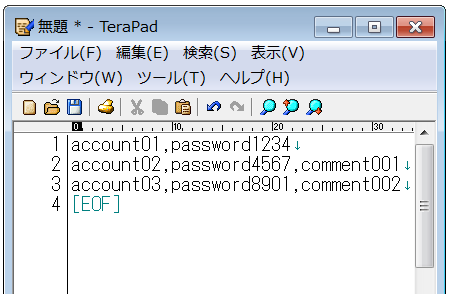 アカウントとパスワードの出力