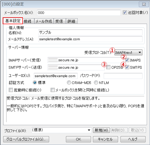②IMAPS チェックをいれます