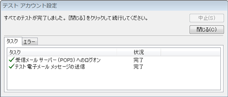4 テストが完了したら【閉じる】ボタンをクリックします。