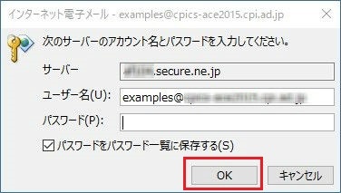 6 パスワード入力画面が表示されるので、メールアドレスに設定したパスワードを入力し「OK」ボタンをクリックします。