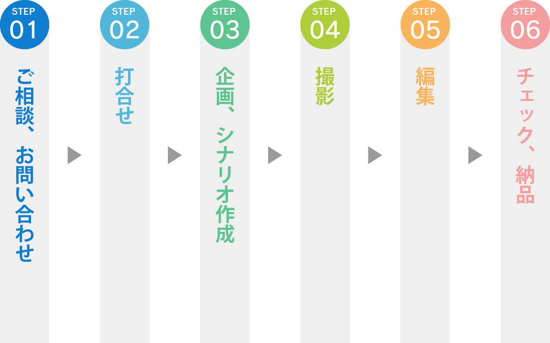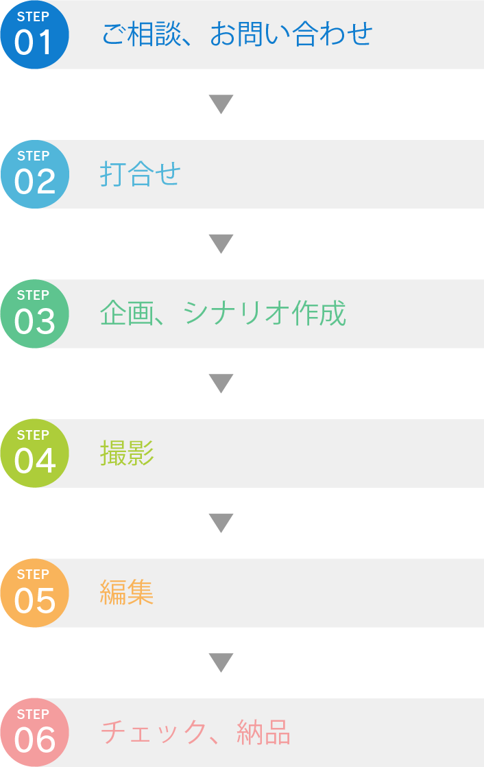 弊社は、ご相談から打ち合わせ、企画、編集・制作、動画のアップまで、すべての工程をお力添えいたします。